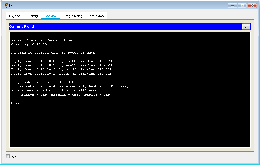Setelah itu coba test Ping antar client, dengan cara masuk ke Tab Desktop yang tadi lalu klik Command Prompt , setelah itu lakukan ping seperti biasa.