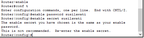 Oke sekarang kalian sudah tau bagaimana cara membuat password di Router Cisco dengan 2 cara.