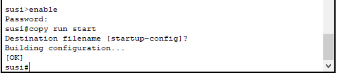 maka dari itu kita harus menyimpan konfigurasi kita dengan cara memindahkannya ke dalan Startup Config ( NVRAM ) dengan cara ketik perintah “copy running-config startup-config” atau cukup dengan “copy run start”