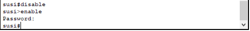 Meskipun kita buat enkripsi di jenis password tetep saja akan memilih yang Secret. Untuk pembuktian silahkan coba exit ke Mode User EXEC Mode. Kemudian masuk ke mode Privilege seperti dibawah ini.