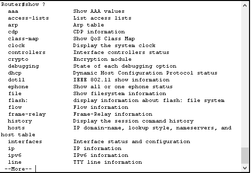 Hal yang harus diingat saat menggunakan show ini adalah kata “Show” artinya menampilkan , jadi ketika kita gunakan perintah show ini maka kita harus tambahan syntak dibelakangnya. Hal ini dimaksudkan agar kita tahu apa yang mau kita liat. Untuk melihat apa saja yang bisa dilihat oleh perintah show ini dapat gunakan tanda “?” di belakangnya.