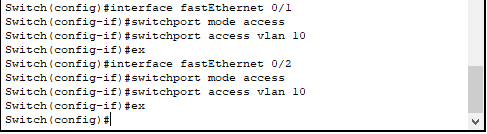 • Fa0/1 & Fa0/2 => VLAN 10